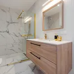 Badrummet har badkar och dusch.